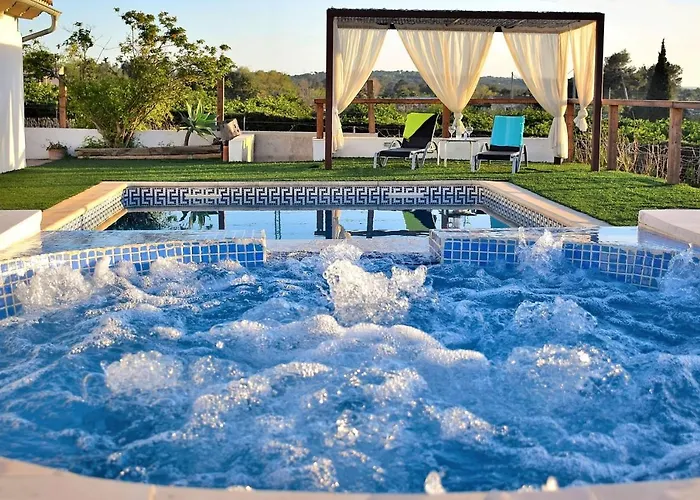 160 Villa Can Butxaqui Etv13739 By Mallorca Charme med 2 sovrum, som ligger 7 minuter till fots från Ethnological Museum of Majorca, erbjuder soldäck, solterrass och picknickområde. Villan med 2 badrum erbjuder en utomhuspool samt solarium och bubbelpool, där du kan koppla av efter en hektisk dag.